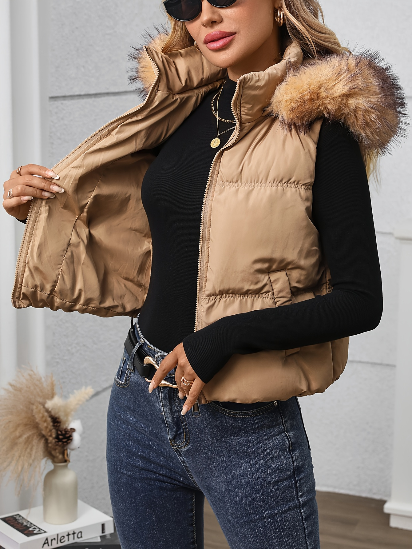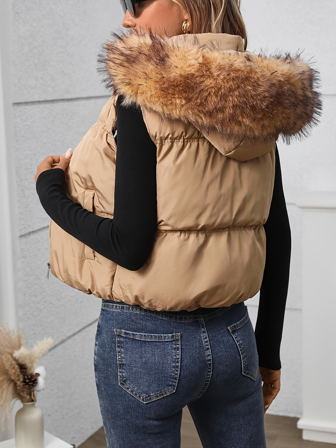 Plus Size Women's Casual Thickened Warm Hooded Jacket - Autumn Winter Machine Washable Zipper Front H-Line Silhouette Solid Color for Outdoor Activities & Casual Attire