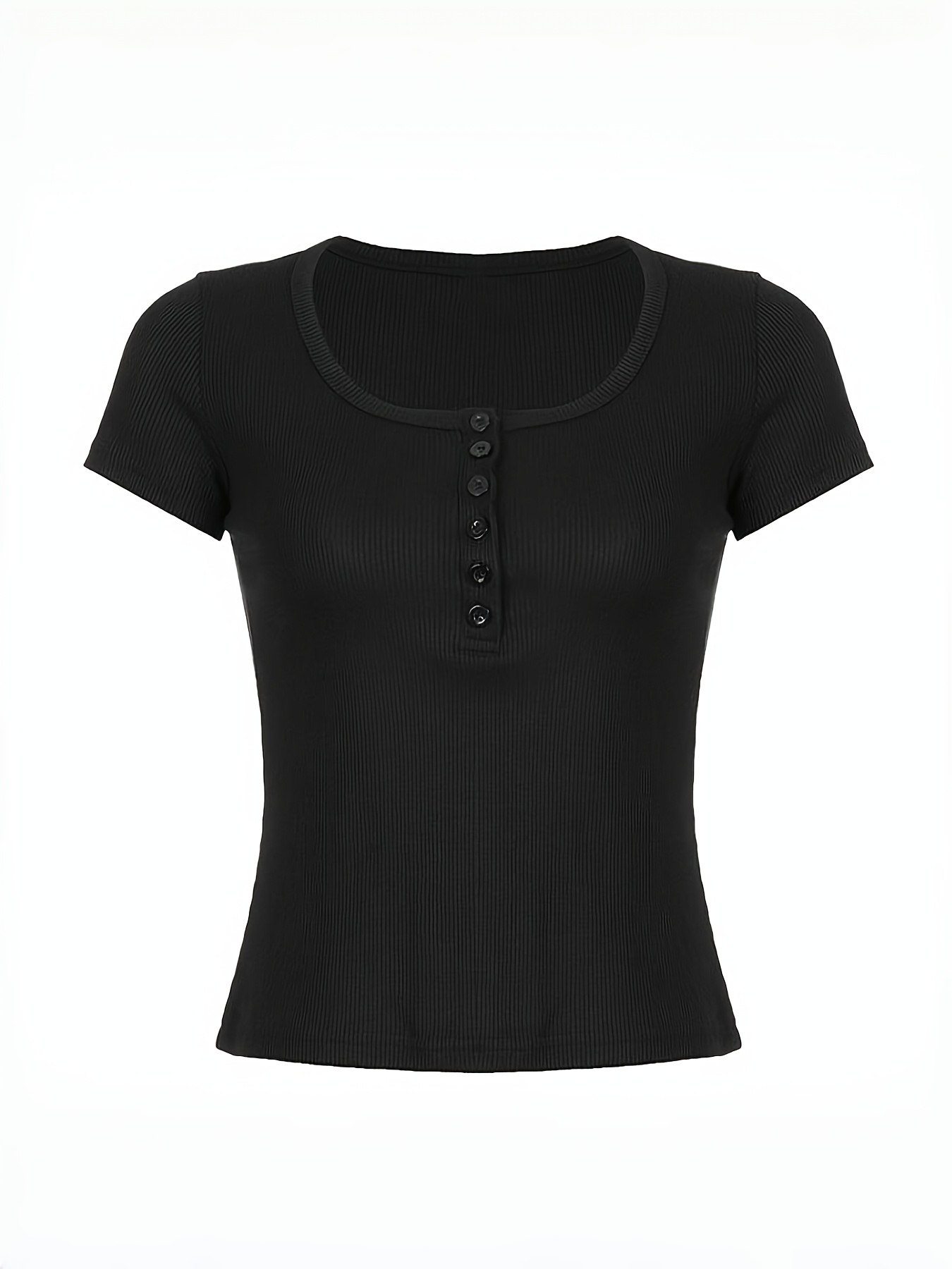 Women's Plus Size 4pcs T-Shirts - Stretchy Breathable V-Neck Button-Front Tops, Non-See-Through Fabric for Gym, Casual, Casual Attire - Black/, Machine Washable Summer Blouses, Workout Tops, Fitted Silhouette, Lightweight Material, Basic Tee, Women