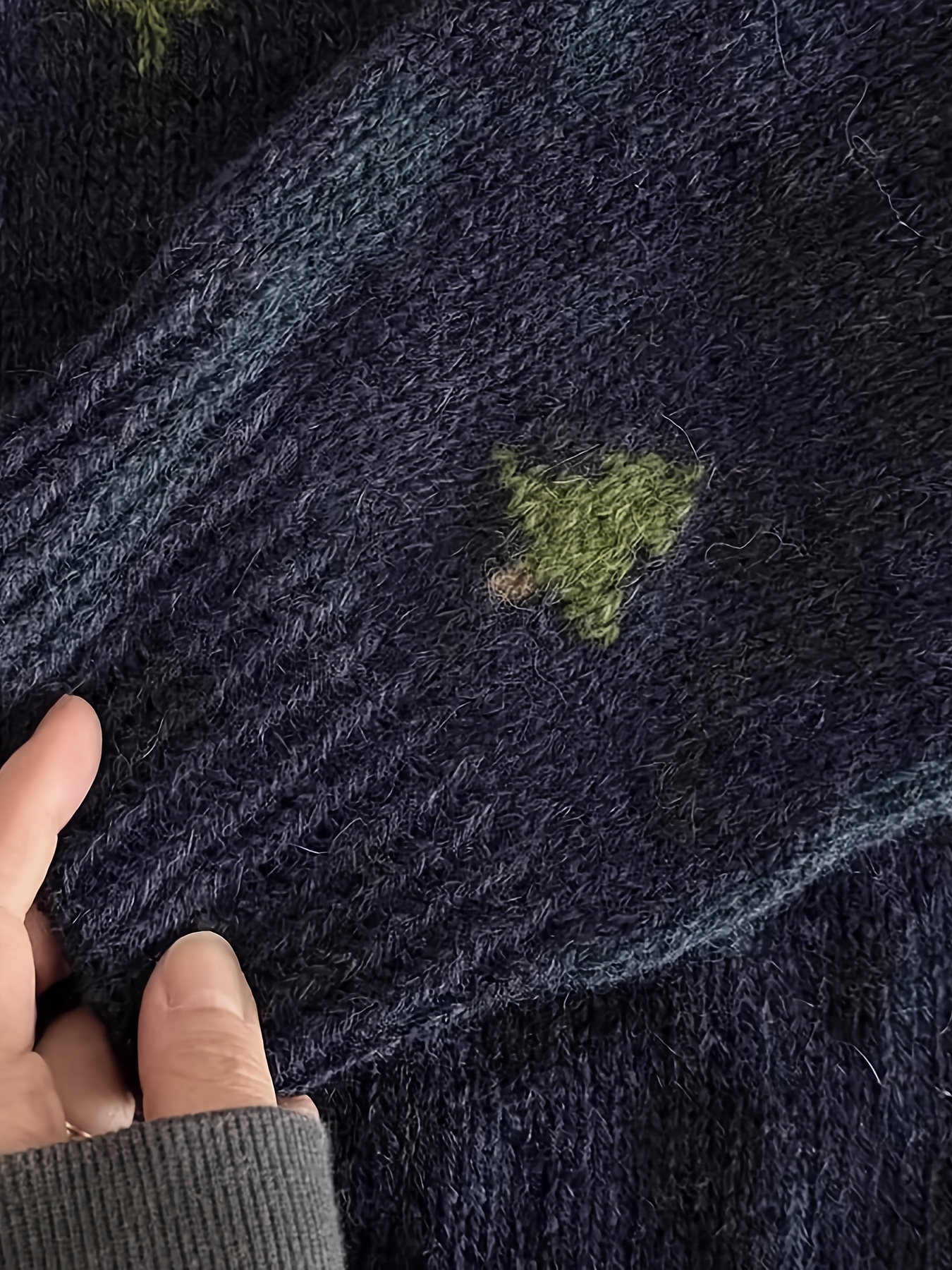 Women'S Cozy Fleece-Lined Christmas Tree Sweater - Navy Blue & Green Holiday Sweater with Soft Fleece Lining, Loose Fit Pullover for Fall/Winter, Casual & Formal Wear, Perfect for Home, Office, or Parties, Christmas Sweater