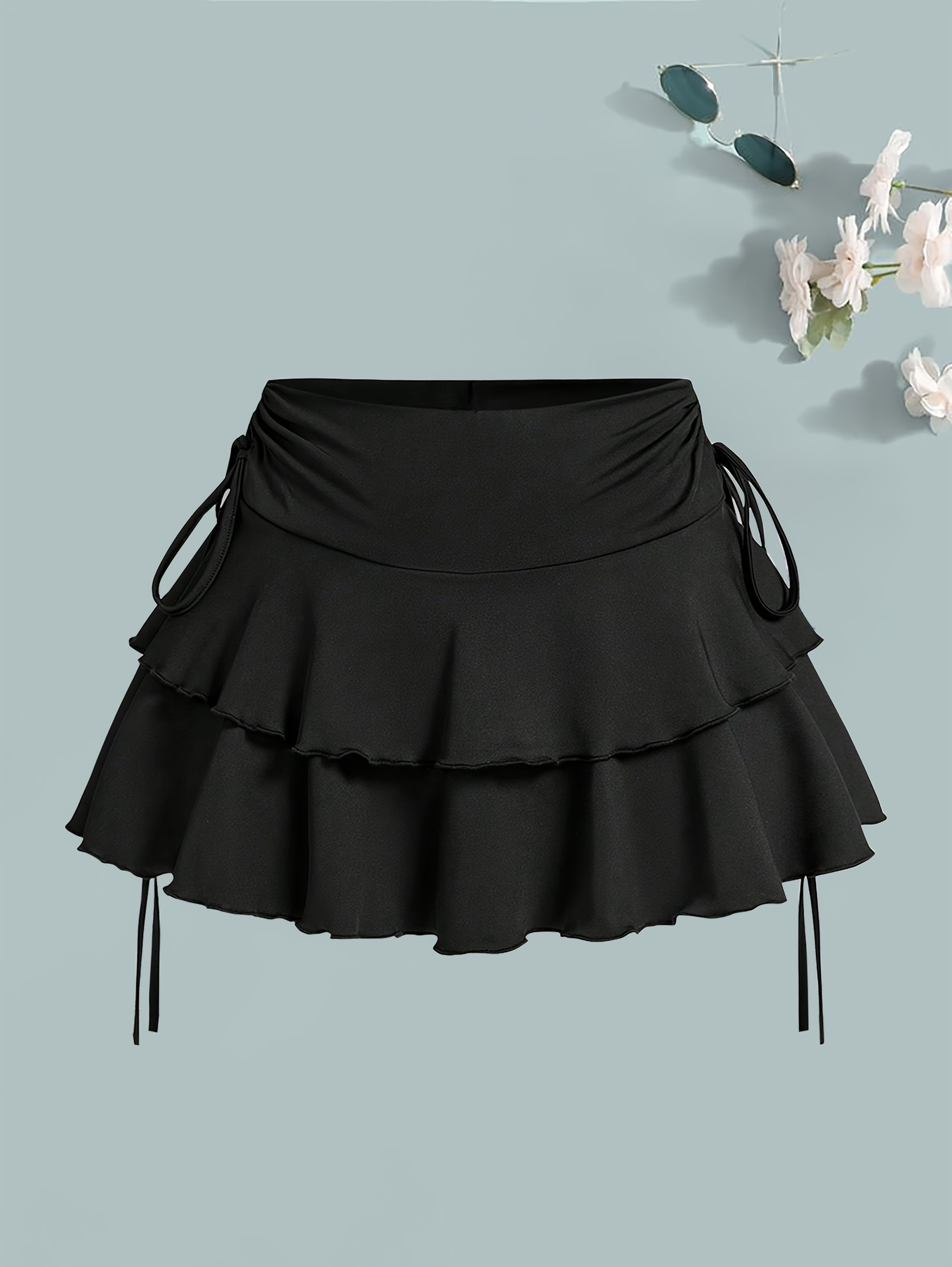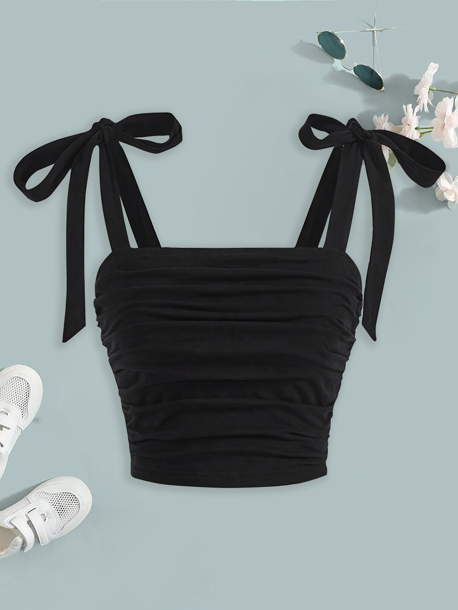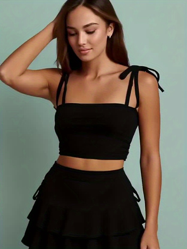 [Spring Sexy Dress] 2pcs Set Spring/Summer Sexy Short Dress Outfit + Fashion Bow Tie Camisole Vest, Multi-Layer Drawstring Women's Skirt