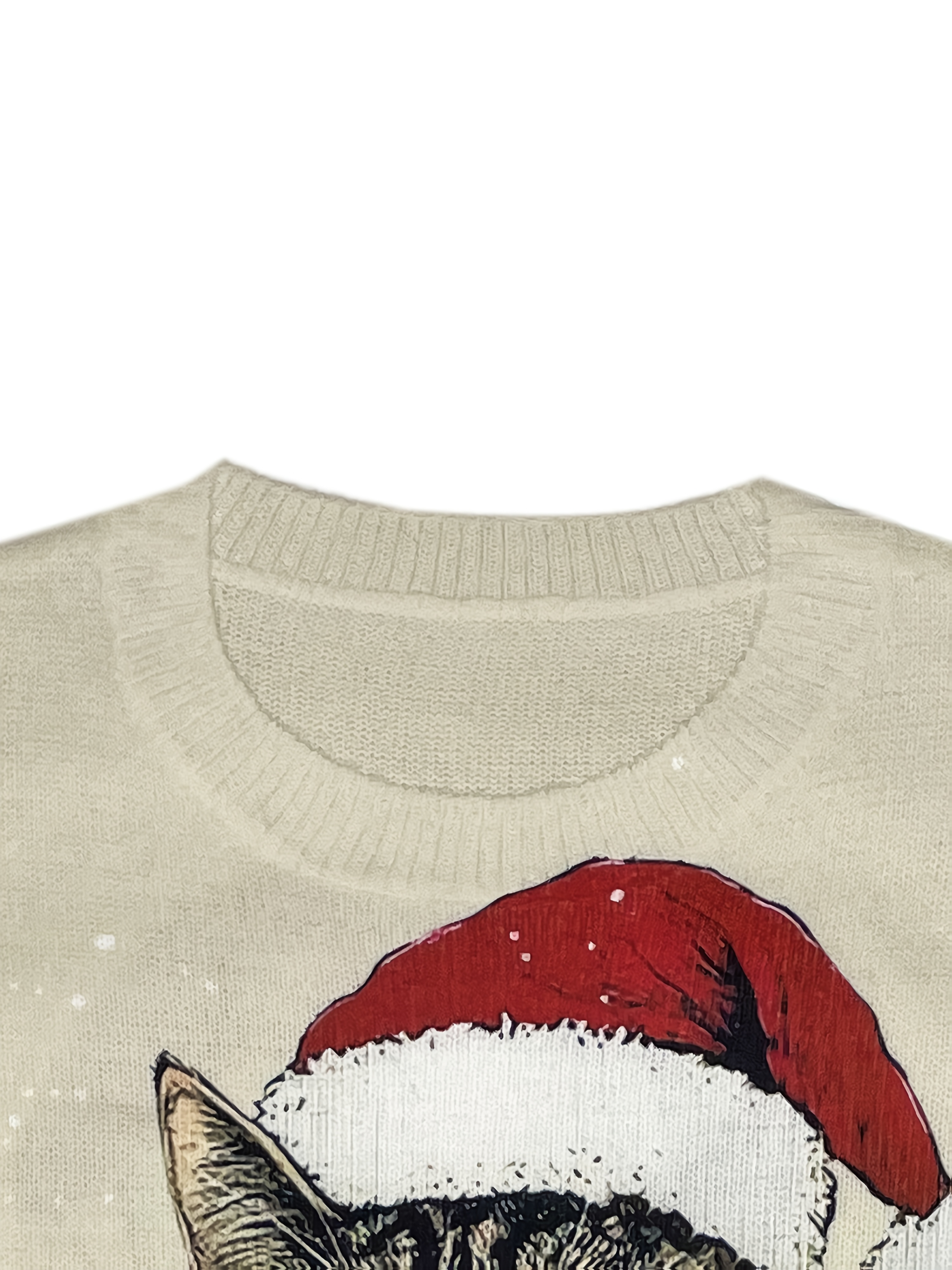 Women'S 3D Printed Cat & Wine Glass Sweater - Cozy Crew Neck, Long Sleeve, Festive Holiday Design with Santa Hat & Christmas Tree, Perfect for Fall & Winter, Holiday Sweater | Festive Cat Design | Construction, Cat Sweater